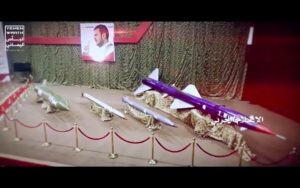 Houthi-militsen viser frem sine hjemmesnekrede missiler 18. juni, 2019. Foto: Skjermdump.