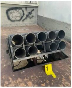 Utskytingsrørene som ble brukt for å skyte raketter mot Bagdads flyplass 28. januar. Foto: Iraqi Ministry of Interior.