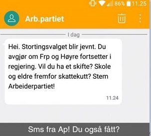En halv million nordmenn mottok søndag formiddag en SMS fra Arbeiderpartiet (AP), der det ble oppfordret til å stemme på AP i valget på mandag, ifølge Nettavisen.