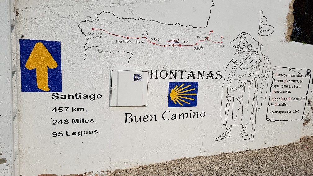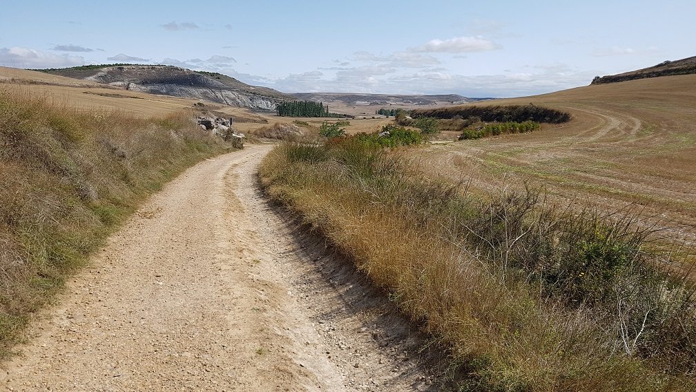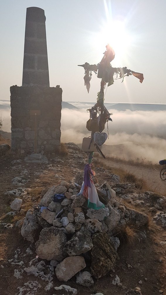 Dagen startet i Castrojeriz, en pittoresk landsby i Burgosprovinsen. Borgruinene på åsen over byen forteller en historie om kamp mot arabiske invasjonsstyrker for over ett tusen år siden. Rett vest for Castrojeriz går pilegrimsleden over et høydedrag som leder over i naboprovinsen Palencia. Tre pilegrimer endte sine liv akkurat på dette korte, men bratte veistykket. På toppen et det satt opp et kors til minne om en av dem. Det har en minneplakett, blomster, små hilsninger eller minneord, og ved korsfoten ligger skoene. Det blir nært, og jeg griper meg i å betrakte mine egne sko mens jeg står der. En påminnelse om livets forgjengelighet, og mannen som døde der så ut til å ha værtt langt yngre enn meg. Pilegrimsleden har mange lignende minnesmerker