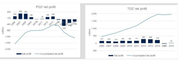 De to grafer under viser også tydelig forskjellen på et godt drevet selskap og et vanskjøttet når det kommer til netto fortjeneste: