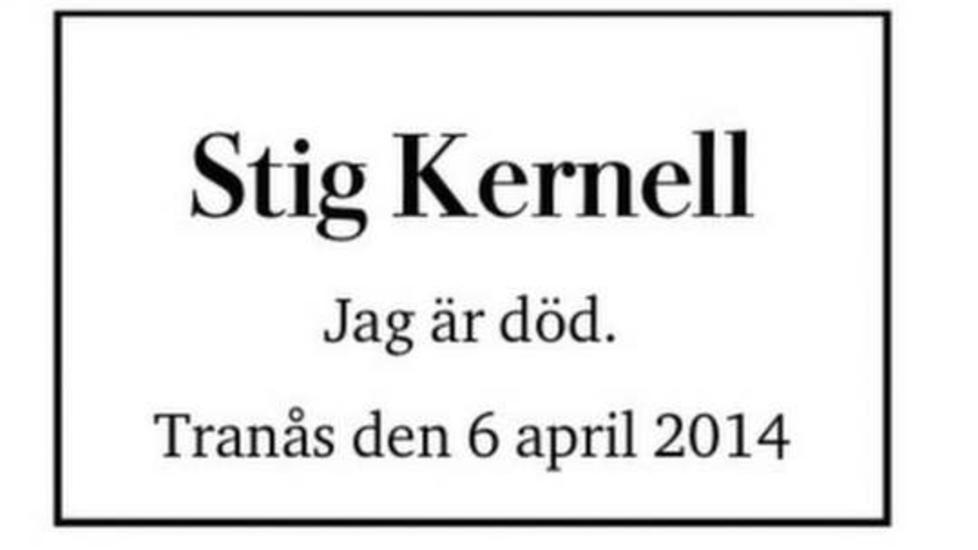Vi vender blikket en annen vei: Når folk dør, kommer de i avisen. Jeg leser den svenske avisen Dagens Nyheter regelmessig, og der er det hver dag et par sider med døsannonser. Som i norske aviser.