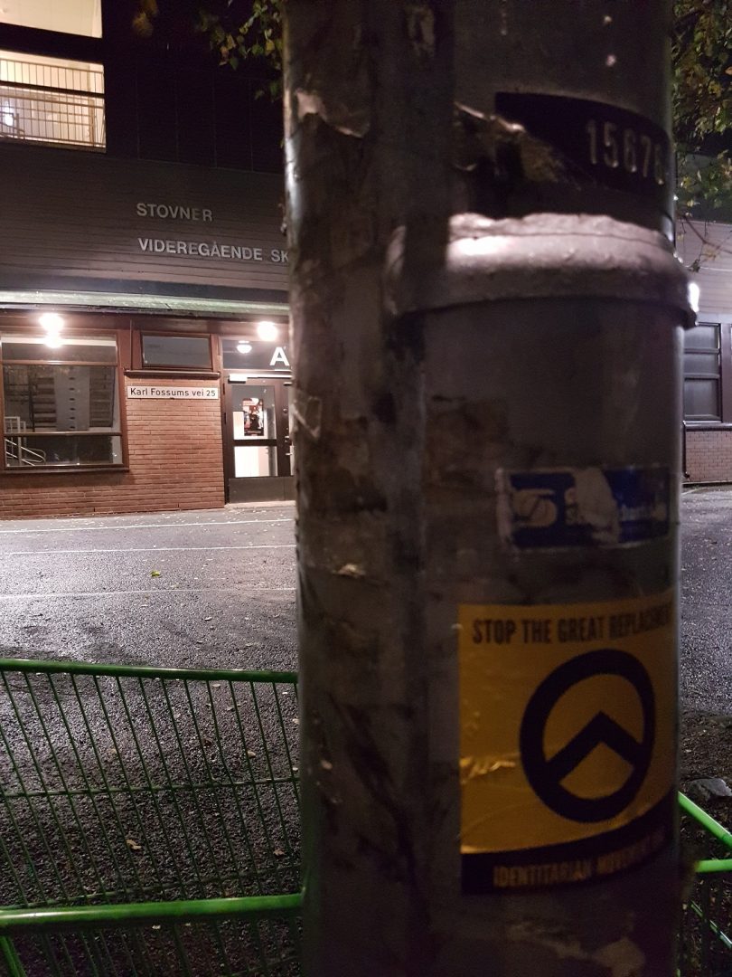 Som Document.no også rapporterer er det hengt opp store klistremerker for Generasjon Identitet (GI) på i det minste Stovner, Kuben og Bjerke videregående skoler i løpet av helgen.