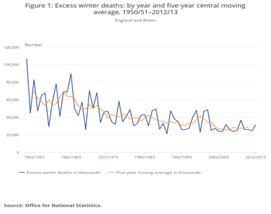 [4] Office of National Statistics. Statistics. Statistical Bulletin. “Excess Winter Mortality in England and Wales: 2012-13”, 2013 https://www.ons.gov.uk/peoplepopulationandcommunity/birthsdeathsandmarriages/deaths/bulletins/excesswintermortalityinenglandandwales/2013-11-26