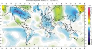 Som et ikke uviktig poeng nevnes at en kort og kjølig sommer på Grønland, supplert med mye snefall i år, har resultert i at is-mengden har økt i 2017 (kilde: Danmarks meteorologiske Institutt). Ett år er selvfølgelig altfor lite for å snakke om en ny trend – men stemmer godt med utviklingen mot mindre energi-utstrålning fra solen (se artikkelen Status for klimautviklingen – oktober 2017 3. desember 2017).
