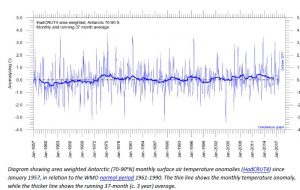 Til slutt skal temperaturutviklingen for polene presenteres nærmere; det slås ofte stort opp at på disse stedene øker temperaturen vesentlig – dette er fullstendig feil – men gjentas uansett.