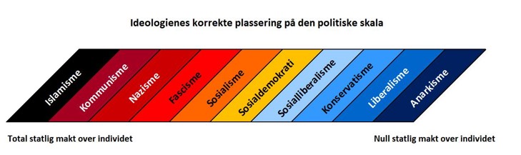 En lineær «venstre-høyre»-skala for politiske ideologier er uansett dårlig. Det blir alt for enkelt. Likevel er det den mest brukte politiske forklaringsmodell. Men det er i hvert fall meningsløst å plassere tilhengere og utøvere av en stor, omfattende og mer eller mindre tyrannisk statsmakt – slik både Hitler og hans nasjonalsosialistiske regime og Mussolini og hans fascistiske regime, beviselig var – på samme side som konservative og liberalister, begge ideologier som har mindre-til-svært-liten stat, samt individuell frihet (og ansvar) blant sine grunnsteiner!