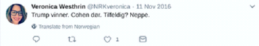 – Trump vinner. Cohen dør. Tilfeldig? Neppe, skrev den nye USA-korrespondenten tre dager etter valget i 2016.