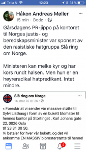 Etter det Resett kjenner til er Bodø NU også tipset om MDG-politiker Møllers Facebook-kommentar, men har av ukjente grunner ikke omtalt den på samme måte. Men det er vel kanskje mindre sårende å bli omtalt som en «høyreradikal hatpredikant» enn som «ondskapens fyrste»?