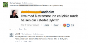 – Hva med å stramme inn en løkke rundt halsen din i stedet, Sylvi, skrev mannen.