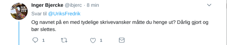– Og navnet på en med tydelige skrivevansker må du henge ut? Dårlig gjort og bør slettes, svarte en kvinne.