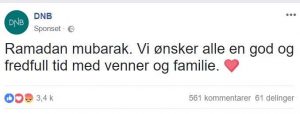 DnB har i tillegg til en sedvanlig nasjonaldagshilsen, valgt å også ønske sine kunder en god faste.
