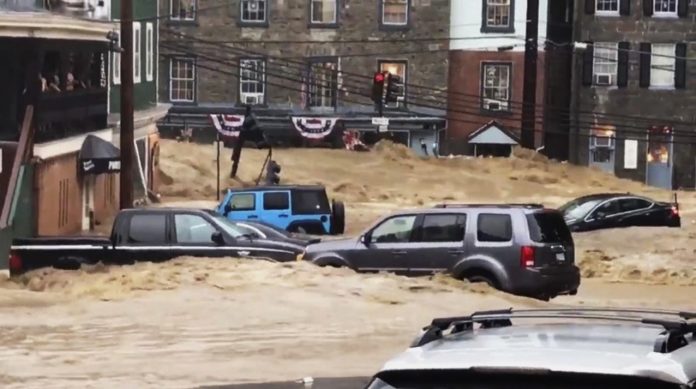 Flommen kom uten forvarsel etter et kraftig regnvær i store deler av Maryland. Ingen er meldt skadd eller omkommet, men redningsmannskaper var søndag kveld ennå ikke ferdig med å gjennomsøke sentrum av byen.