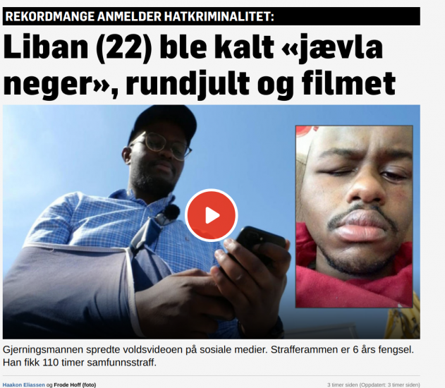 Sammenligner man de to sakene er det avslørende å se hvordan MSM forskjellsbehandler. I voldsepisoden i Trondheim er det ingen som skal vite hvem gjerningsmennene er. Liban-saken er derimot klokkeklar, med «ble kalt jævla neger» plantet i tittelen.