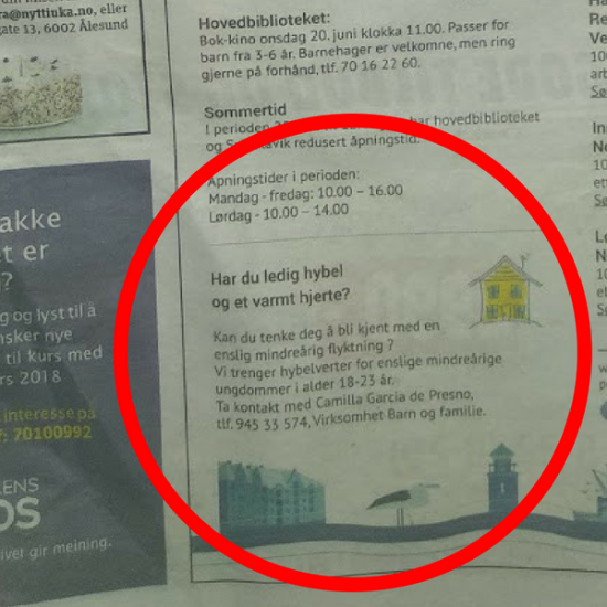 Ålesund kommune har lagt inn en annonse i byavisen «Nytt i Uka» der de søker etter hybler for «mindreårige» asylsøkere.