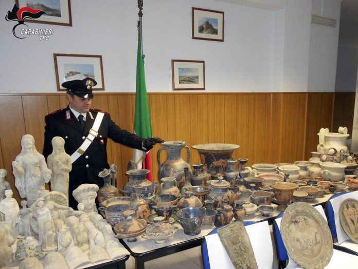 De stjålne gjenstandene stammer fra ulovlige, arkeologiske utgravinger på Sicilia i Italia, som påtalemyndigheten mener ble igangsatt på oppdrag fra en kunsthandler i London.