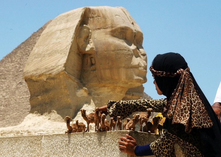 Giza, Kairo: – Souvenirs! Souvenirs! roper den lokale selgeren på gebrokkent engelsk, og fremholder et assortement av unyttige gjenstander oppi ansiktet på meg . – No, thanks! prøver jeg høflig å avslå. Et nei betyr visst bare kanskje. Jeg skynder meg vekk fra turistbussen hvor selgerne svermer rundt som fluer.