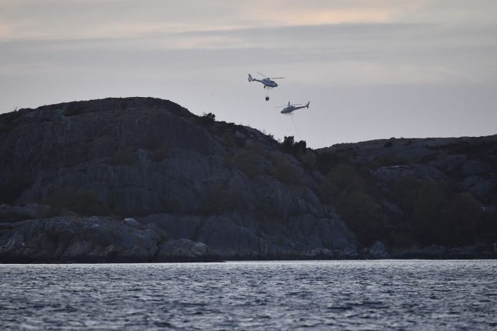 Øya Björkö er drøyt fem kvadratkilometer stor, og det bor omkring 1.500 mennesker der. Bilder i svenske medier viste store mengder røyk som stiger opp fra en skog på øya.