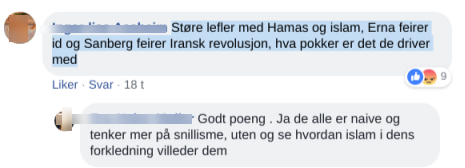 – Støre lefler med Hamas og islam, Erna feirer id og Sanberg feirer Iransk revolusjon, hva pokker er det de driver med, skriver mannen.