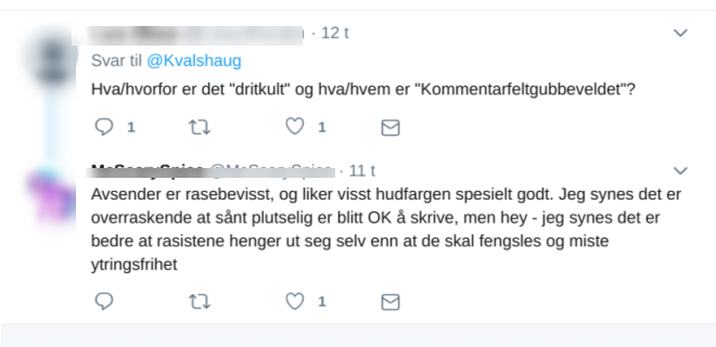 Men ikke alle synes Kvalshaug sine meldinger var nødvendig, og flere kaller den rasebevisst.