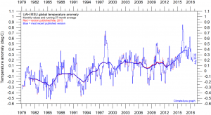Utviklingen i den lavere troposfæren – nedre del av atmosfæren – vises i figuren. Merk at det er satellittmålinger som er det mest pålitelige, og at det er disse målingene som presenteres her.
