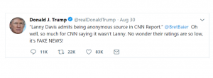 I ettertid avviser CNN at Lenny Davies var den anonyme kilden som røpet at Michael Cohen visste at president Trump hadde inngående kjennskap til Donald Trump Jr`s møter med russere før valget i 2016. CNN og Carl Bernsteins problem er at Lenny Davies innrømmer at han var denne kilden, noe som gir president Trump grunnlag for å kalle CNN og Carl Bernstein for løgnere.