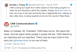 Den amerikanske presidenten Donald J. Trump fortsetter å angripe CNNs Carl Bernstein for å fremvise dårlig journalistisk etikk ved å gjemme seg bak «anonyme» kilder. Dette ifølge en artikkel fra Breitbart i USA. Carl Bernstein er kjent som en av journalistene som avslørte Watergateskandalen som medførte at daværende president Richard Nixon valgte å gå av som president.
