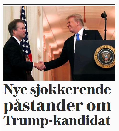 Men det er uansett interessant å se hvordan VG og NRK velger å dekke og beskrive «avsløringene» som kommer i USA om Brett Kavanaughs studenttid på 1980-tallet, for snart førti år siden. Kavanaugh er nominert av Donald Trump til Høyesterett og må gjennom en høring i senatet.