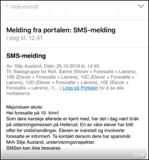 – Vi har registrert navn på fire elever som alle har status som mistenkt i saken. Dette vil bli fulgt opp videre med foreldre og politisak, sa operasjonslederen.