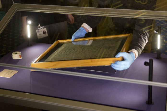 Magna Carta er frihetsbrevet fra 1215 som fikk grunnleggende betydning for Englands statsforfatning og rettssikkerhet. Dokumentet som er utstilt ved middelalderkatedralen i Salisbury er et av fire gjenværende originale håndskrevne eksemplarer.