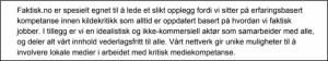 According to the description provided by Faktisk.no they regard themselves to be qualified for the task, based among other things on having competence based on «experience» in source criticism.