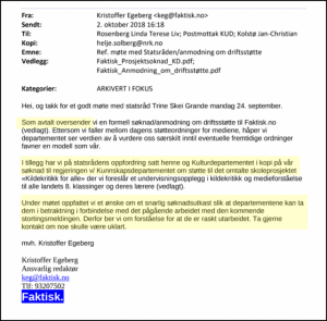 Faktisk.no AS describes their apprehension of the meeting with Minister of Culture, Grande, in a new letter to the government as follows (see a copy of the letter below),