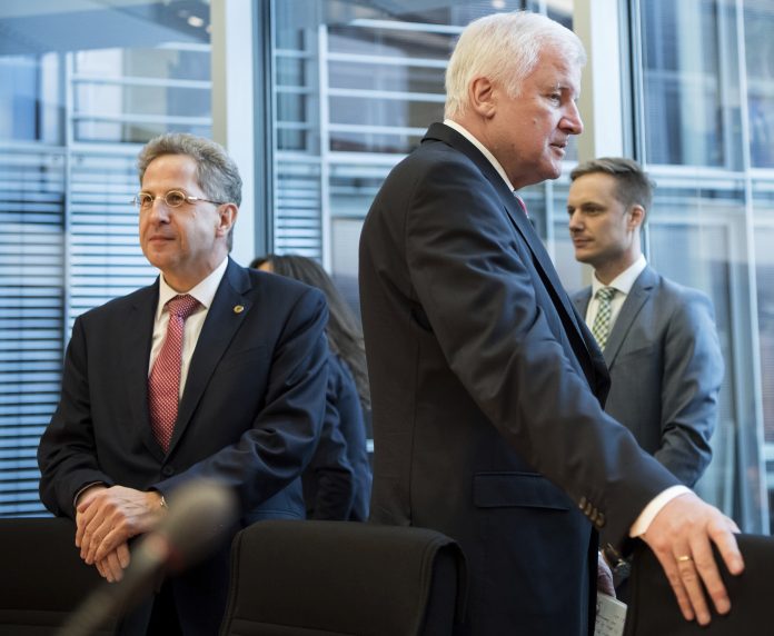 Hans-Georg Maassen (t.v.) fikk likevel ikke en ledende stilling i innenriksdepartementet. Hans tidligere støttespiller, innenriksminister Horst Seehofer, sa mandag at han er personlig skuffet over den tidligere etterretningssjefen. Foto: Bernd von Jutrczenka / DPA / AP / NTB scanpix