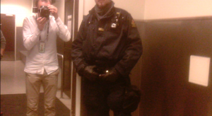 Ved avsluttet arrangement kom en høflig, voksen dame fra vaktmannskapet frem mot oss. Hun ba oss forlate stedet. Vakten sa at hun ikke kunne stagge voldskommunistene, og ba oss gå av hensyn til vår egen sikkerhet. All ære til henne for anstendig opptreden. Annen ære var ikke å spore i hordene av antirasister.