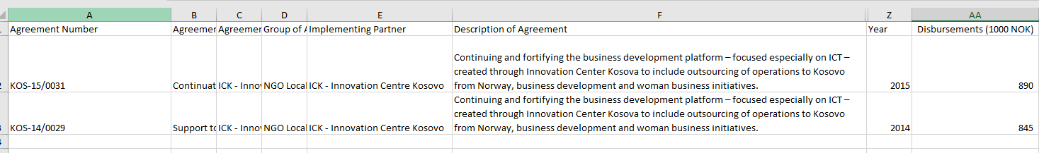 Ifølge en oversikt fra Norad fikk Innovation Centre Kosovo (ICK) 845 000 norske skattekroner i 2014, og 890 000 kroner i 2015.