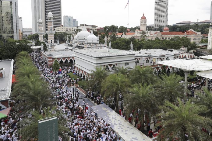 Titusener av muslimer marsjerte gjennom gatene i Malaysias hovedstad Kuala Lumpur lørdag for å forsvare sine egne høyt verdsatte privilegier.