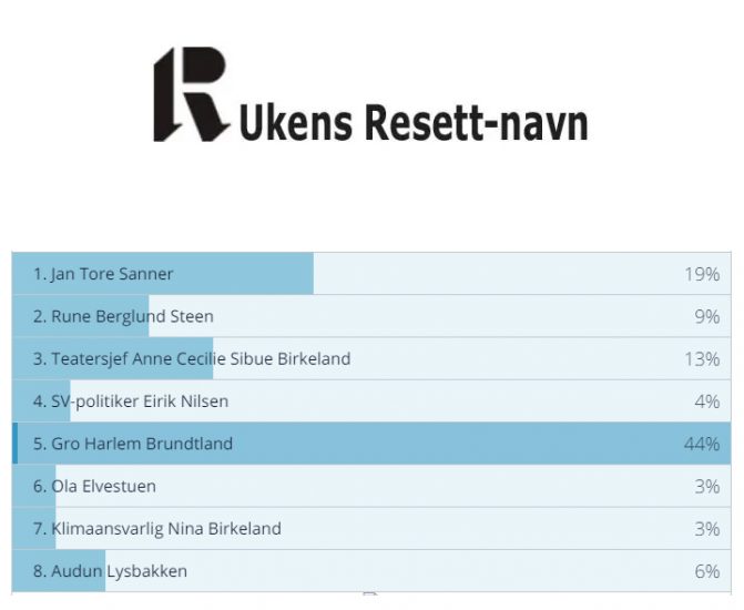 Vi gratulerer fru Brundtland med den suverene seieren. Og hvis hun så befaler, legger vi Resett ned slik at kontrollen på hva folk blir fortalt igjen kan eies av Ap.
