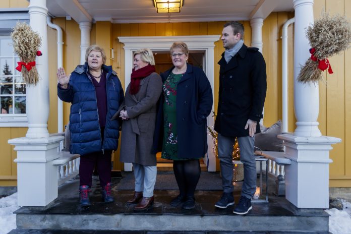Regjeringspartiene Frp, Høyre og Venstre sitter nå sammen med KrF på Granavolden Gjæstgiveri på Hadeland med mål om å forhandle fram en flertallsregjering.