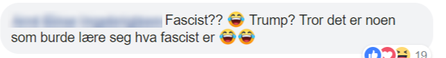 – Fascist?? ? Trump? Tror det er noen som burde lære seg hva fascist er, skriver en person.