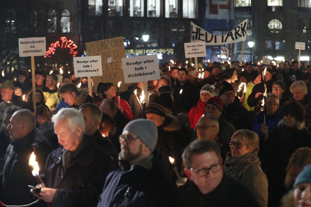 I forkant hadde ulvemotstanderne marsjert fra Youngstorget til Stortingsbygningen, og ropt «Stortinget bestemmer, regjeringen glemmer».