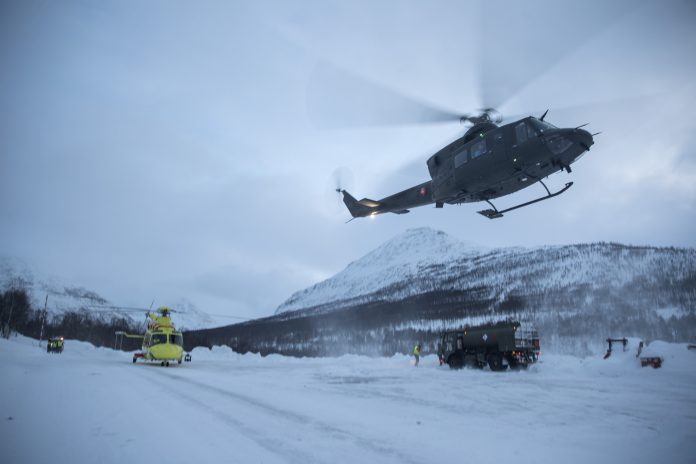 Med hjelp fra Luftforsvarets 330-skvadron starter politiet søket etter de antatt omkomne i skredområdet i Tamokdalen i Troms natt til onsdag.