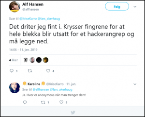 11. januar kom imidlertid en tvitrer med ønske at Resett «blir utsatt for et hackerangrep».