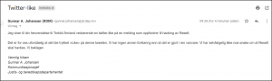Jeg viser til din henvendelse til Torkild Åmland vedrørende en twitter-like på en melding som oppfordrer til hacking av Resett.