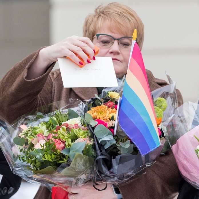 Høylytt jubel og applaus møtte Venstre-leder Trine Skei Grande da hun ble feiret som Norges nye likestillingsminister på homsebaren London Pub i Oslo.