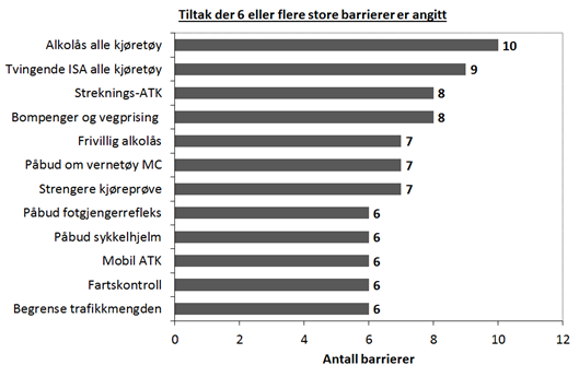 «Et historisk tilbakeblikk på trafikksikkerhetspolitikken forteller oss at barrierer for tiltak kan overvinnes. Påbud om bruk av bilbelter ble innført, men ikke uten mye motstand og lang diskusjon. I dag vil vel de færreste, om noen, ta til orde for å oppheve påbudet.