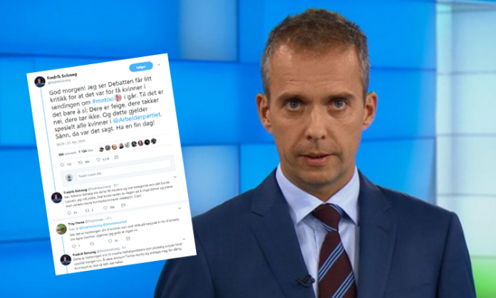 Alt startet på sosiale medier da NRK-programleder Fredrik Solvang ble anklaget for å ha et dårlig kvinnesyn fordi det var for få kvinner tilstedet under «me too» debatten på NRK.