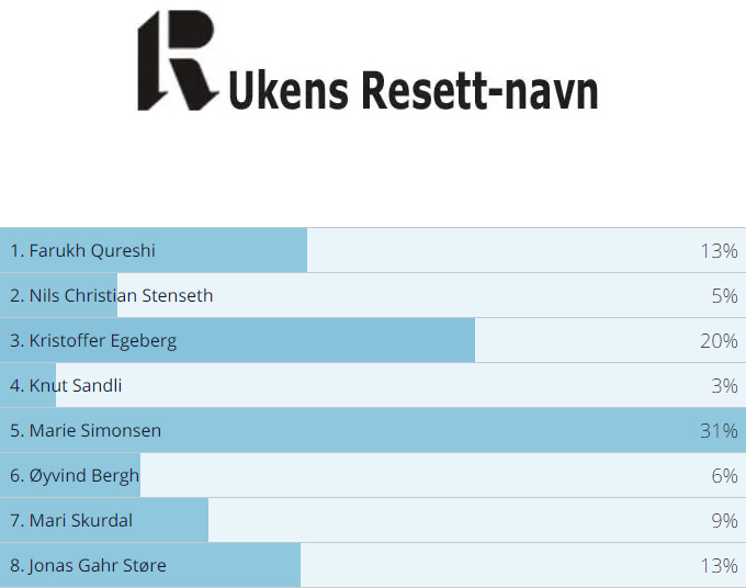 Les også: Vinner av Ukens Resett-navn (uke 9)