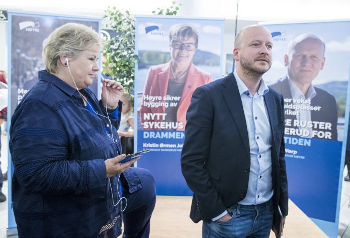 Sigbjørn Aanes (t.h) var en nær medarbeider for statsminister Erna Solberg (H) inntil desember 2017. Deretter fikk han jobb som PR-rådgiver i First House. De siste dagene har han bistått sin venn, den permitterte justisministeren Tor Mikkel Wara (Frp), som også har bakgrunn fra First House. Foto: Terje Pedersen / NTB scanpix