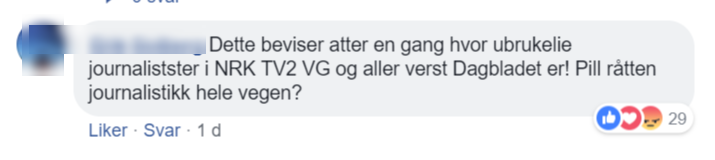 – Dette beviser atter en gang hvor ubrukelie journalistster i NRK TV2 VG og aller verst Dagbladet er! Pill råtten journalistikk hele vegen, skrives det.