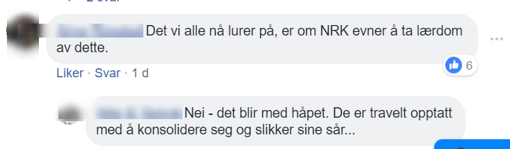 På sosiale medier får NRK massiv kritikk. I en sak lagt ut av Tove Bjørgås om frikjennelsen hagler det av sinte kommentarer.